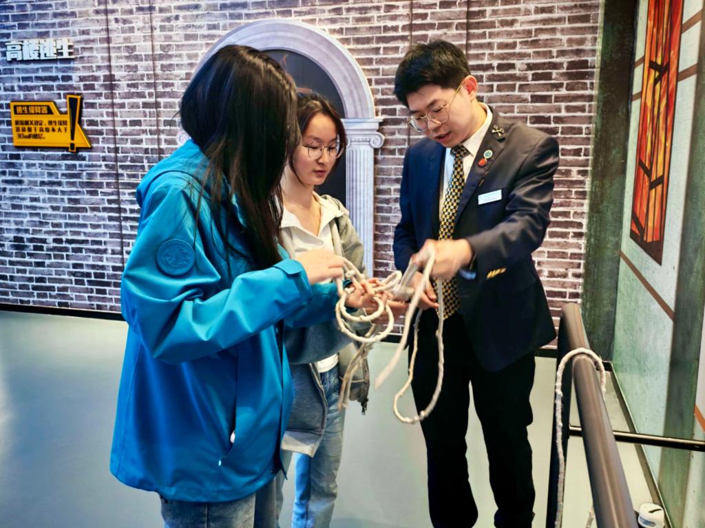 新葡的京集团35222vip长期与陕西省人防办深度校地合作,在全省率先搭建人防本科课程体系,编写《人民防空》教材并纳入必修学分,联合打造人防文创与吉祥物 “秦小盾”,以年轻化方式开展国防科普,,省内高校人防宣教工作成效突出。此次主题团日活动也是推动国家安全教育走进青年的生动实践。全体成员还参与了沉浸式互动体验,学习识别防空警报、参与人防知识抢答、练习逃生绳结打法、观看3D防空防灾演练,在实景实操中提升应急避险能力。